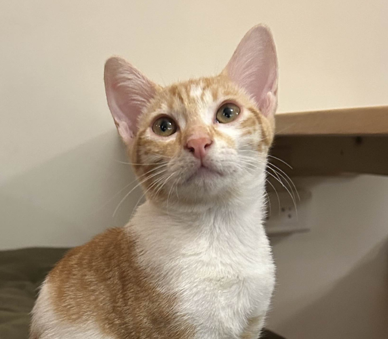 Très gourmande, Ryu a eu un début de vie difficile, ce qui fait d’elle un chat assez peureux avec qui il faut éviter les mouvements brusques et les bruits fort.