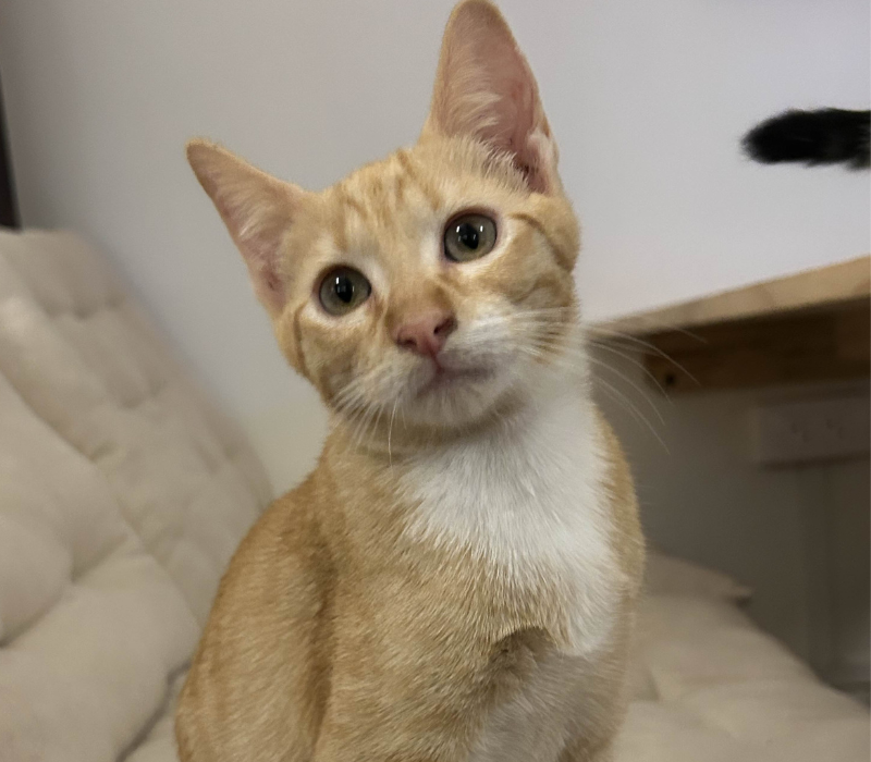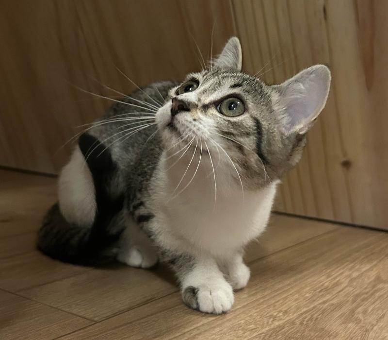 Yuzu, sœur de Nori, est une chatte joueuse et curieuse, toujours partante pour des courses poursuites et des séances de jeux!