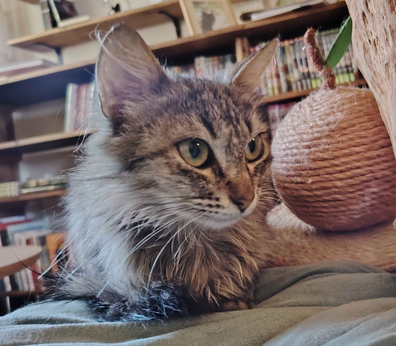 Pocky, la princesse du café, elle est belle (et elle le sait), avec son tempérament bien affirmé, elle n’est pas la plus câline, mais accepte volontiers une séance de jeu.