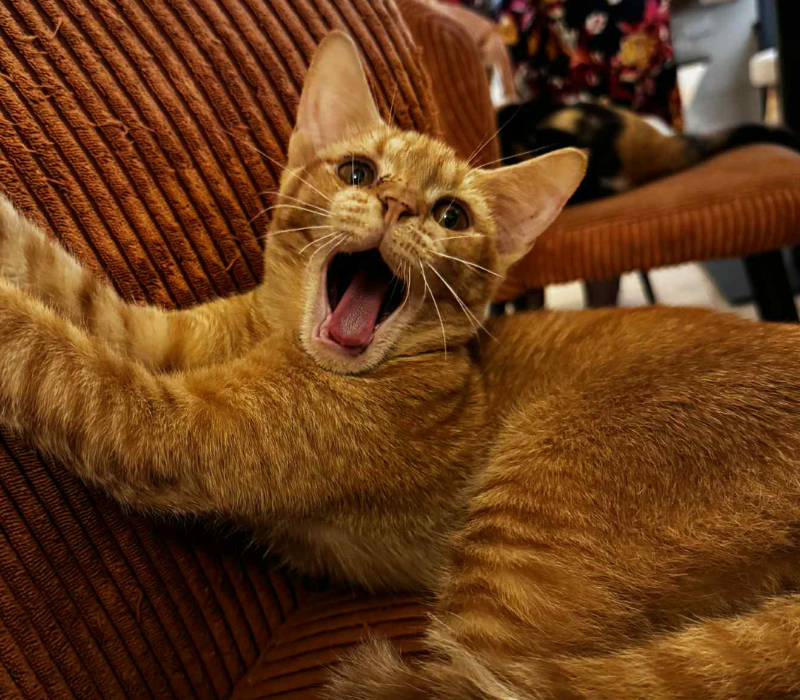 Fred est un chat téméraire, très énergique, joueur et sociable avec les humains et les autres chats